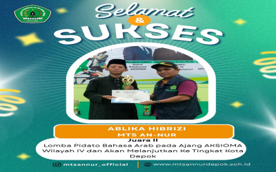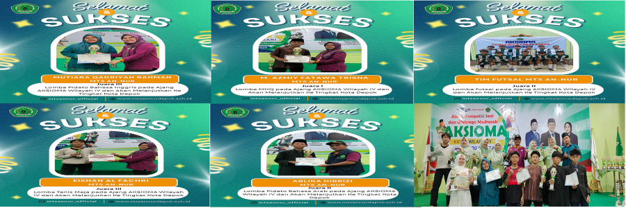 Kegiatan AKSIOMA Tingkat Wilayah 4 Kota Depok Perwakilan Siswa/i MTs An Nur memperoleh Juara dari berbagai bidang perlombaan dalam Kegiatan AKSIOMA Madrasah Wilayah