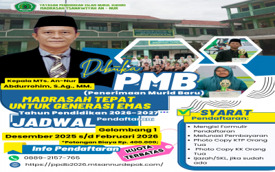 Pendaftaran Murid Baru MTs An-Nur silahkan klik link dibawah ini :???? https://ppdb2026.mtsannurdepok.com/